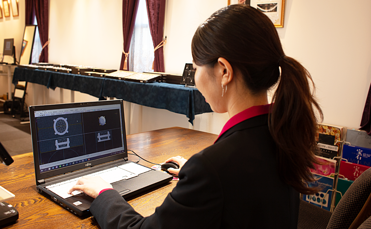 デジタルジュエリー®協会認定デザイナーが、最新3Dデジタル技術を用いてオリジナルデザイン画を作成しご提案。